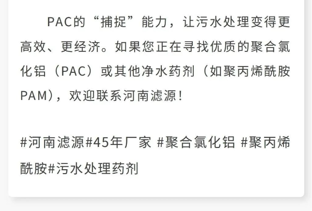 PAC如何“抓”住污水中的雜質(zhì)?揭秘污水處理的高效凈水劑! 咨詢熱線:15638187355 在線咨詢 產(chǎn)品詳細(xì) 上一篇:為什么電廠脫硫只用工業(yè)級(jí)PAC?90%貿(mào)易商不知道的真相 下一篇:《從渾濁到清澈:PAC過量投加的反效果與精確控制方法》 用手機(jī)看 拍下二維碼,信息隨身看 試試用手機(jī)掃一掃,在你手機(jī)上繼續(xù)觀看此頁(yè)面。